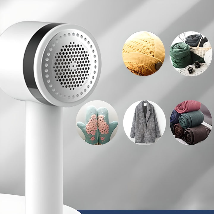 Material rezistent și reutilizabil; lame rotative eficiente cu recipient de colectare a scamelor; alimentare prin cablu USB reîncărcabil inclus; potrivit pentru bumbac, lână, sintetice și tricotaje; design portabil, ușor de folosit acasă sau în călătorii.